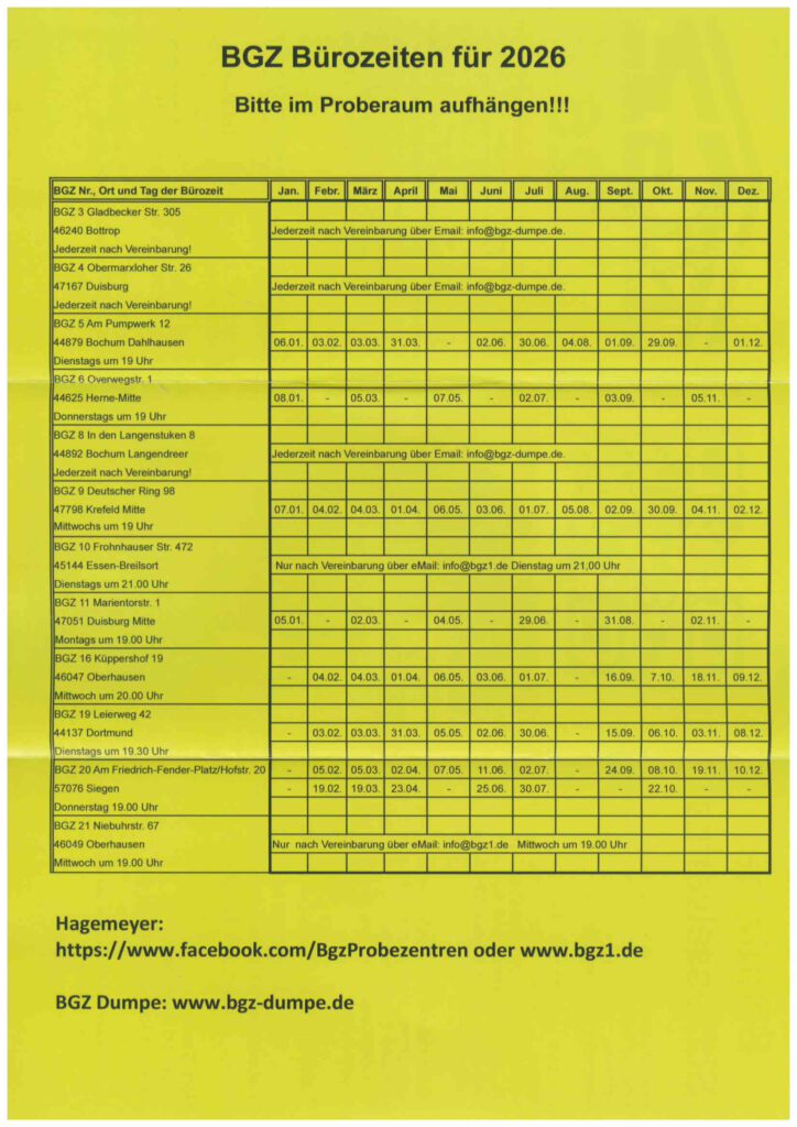 Ihre Musikprobezentren in Bochum, Bottrop, Dortmund, Duisbuhrg, Essen, Herne, Krefeld und Oberhausen.